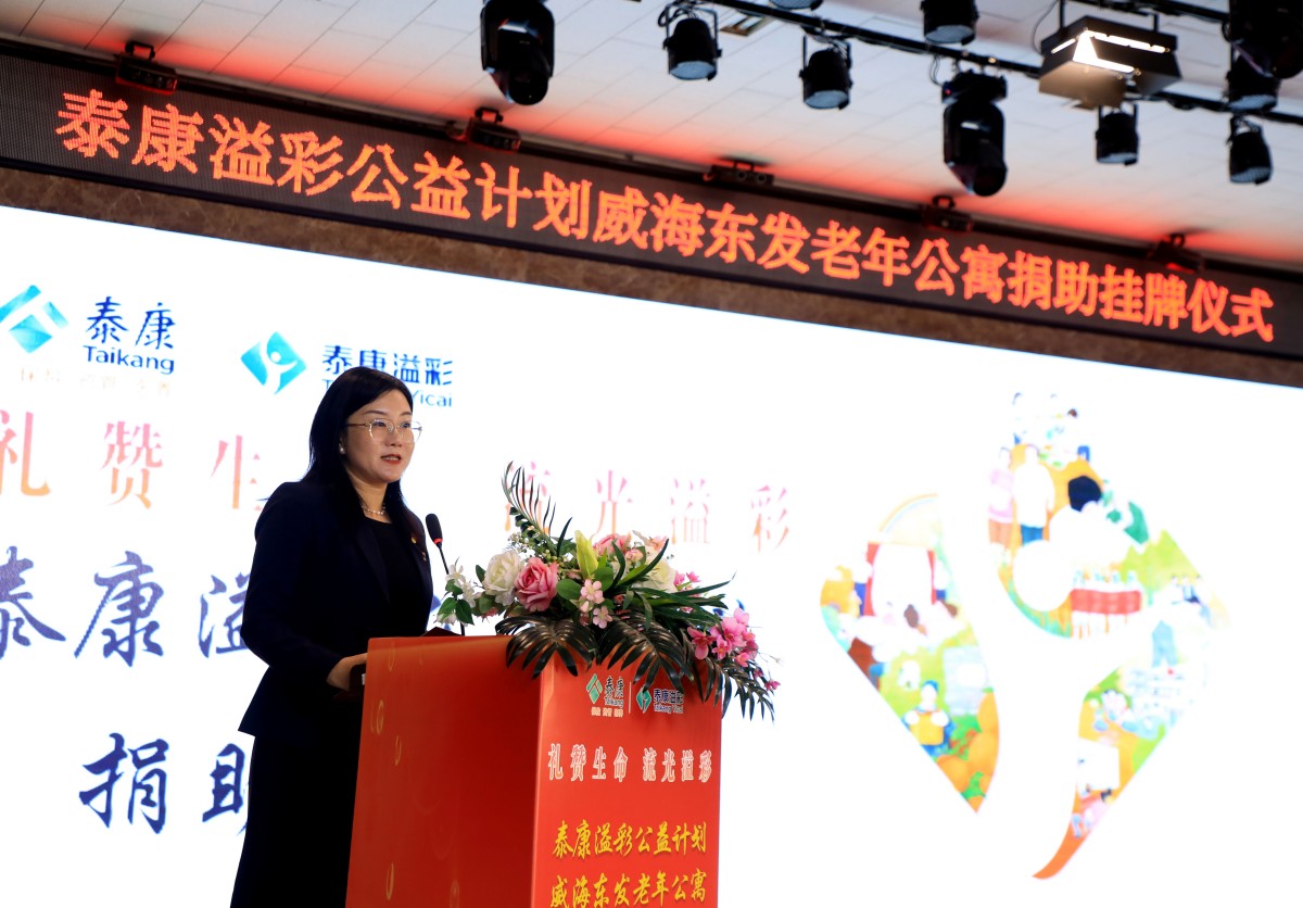 金秋送爽,“溢”路同行。10月23日,泰康“溢彩千家”公益項目捐助掛牌儀式在威海火炬高技術(shù)產(chǎn)業(yè)開發(fā)區(qū)東發(fā)老年公寓舉行,標志著泰康“溢彩千家”公益項目正式落地濱海小城,更好地助力威海養(yǎng)老事業(yè)發(fā)展。威海市保險行業(yè)協(xié)會副秘書長白如和、高區(qū)社會事業(yè)局養(yǎng)老服務科科長吳漢明、老年公寓黨支部書記苗曉丹、泰康人壽威海中支負責人王彬、副總經(jīng)理王琴,老年公寓長輩以及泰康人壽威海中支HWP溢彩志愿者及員工代表等參加了儀式。
