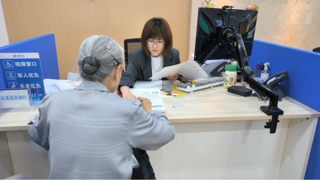 工作人員協(xié)助跨境老齡客戶(hù)辦理業(yè)務(wù)