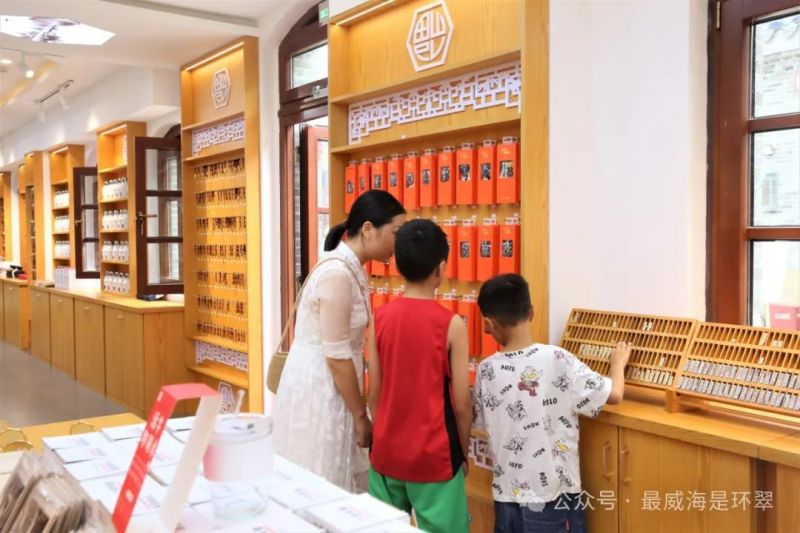 隨機(jī)走進(jìn)一家文創(chuàng)店,富有威海特色的桌面擺件、扇子、冰箱貼等琳瑯滿目,令人目不暇接,大家或?qū)⒕赖奈锲份p輕拿起,或俯下身子仔細(xì)觀賞。來(lái)自四川的王女士帶著孩子前來(lái)游玩,體驗(yàn)過(guò)老街的魅力后,她忍不住贊嘆:“將古建筑元素融入到現(xiàn)代都市中,感覺(jué)非常奇妙,街上有很多文創(chuàng)店,都非常有特色,非常適合帶回去留作紀(jì)念。”