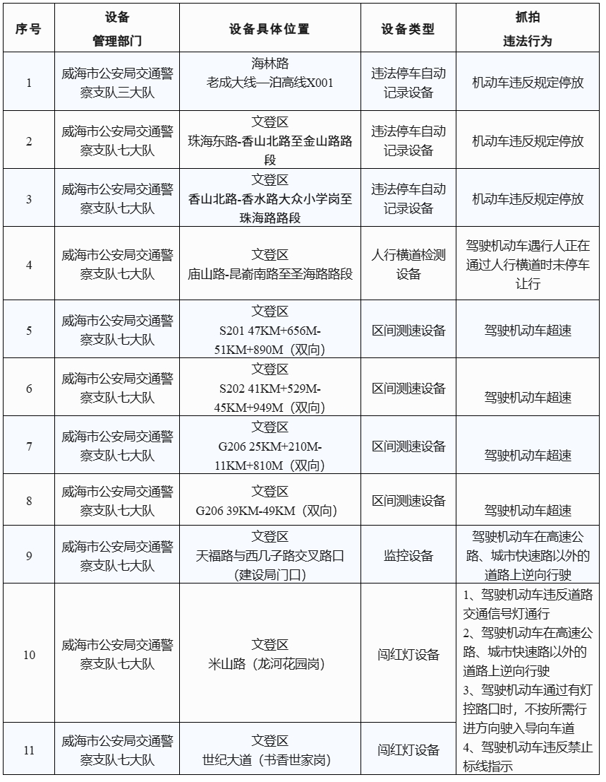 為有效預防和減少交通事故,確保道路交通安全、有序、暢通,根據(jù)《中華人民共和國道路交通安全法》及其實施條例等法律法規(guī)和相關技術(shù)規(guī)范的規(guī)定,依據(jù)《公安機關執(zhí)法公開規(guī)定》,現(xiàn)將新增11處15個交通技術(shù)監(jiān)控設備予以公示,自10月20日起,將對有關交通違法行為進行依法管理,請廣大交通參與者自覺遵守道路交通法律法規(guī),共同維護良好的道路交通秩序。