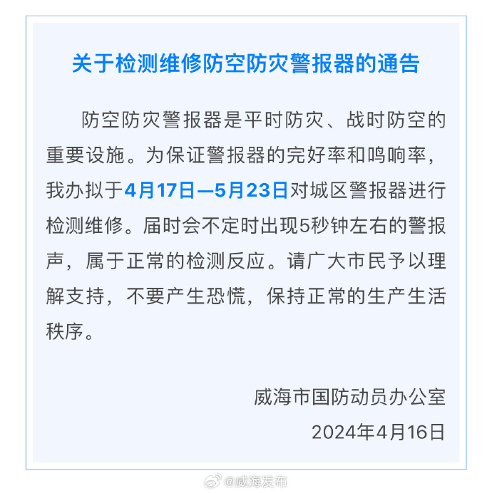 關(guān)于檢測(cè)維修防空防災(zāi)警報(bào)器的通告