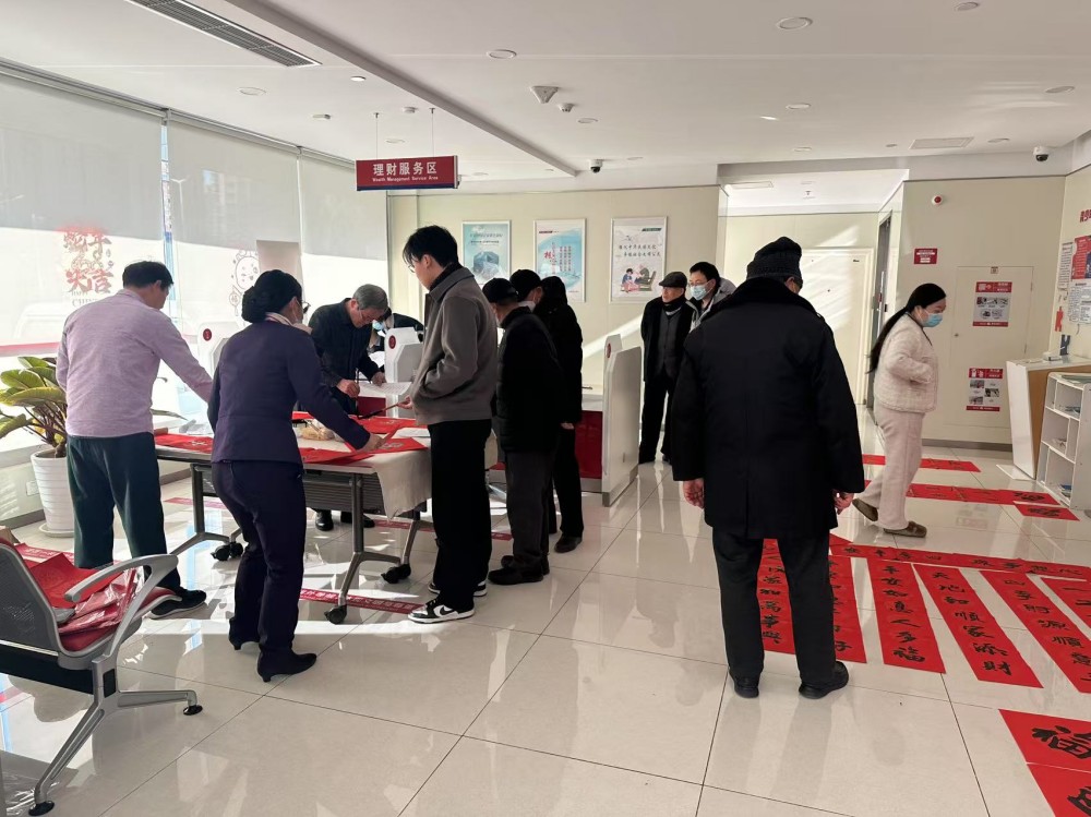 為弘揚(yáng)中華民族優(yōu)秀傳統(tǒng)文化,營造溫馨祥和的節(jié)日氛圍,1月21日,青島銀行威海高區(qū)支行在廳堂開展以“筆墨凝香送萬福 情暖萬家迎新春”為主題的公益服務(wù)活動,邀請威海市書法家協(xié)會副會長及會員到廳堂書寫新春的祝福與寄語贈予我行新、老客戶。